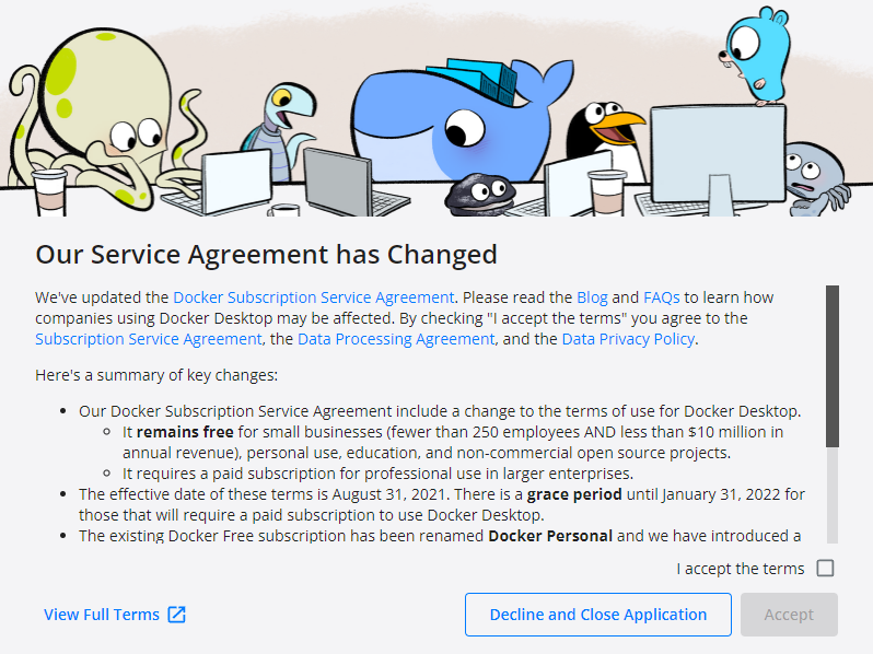 바탕화면에 Docker Desktop 아이콘을 더블클릭하여 정상 실행 확인되면, 설치 끝