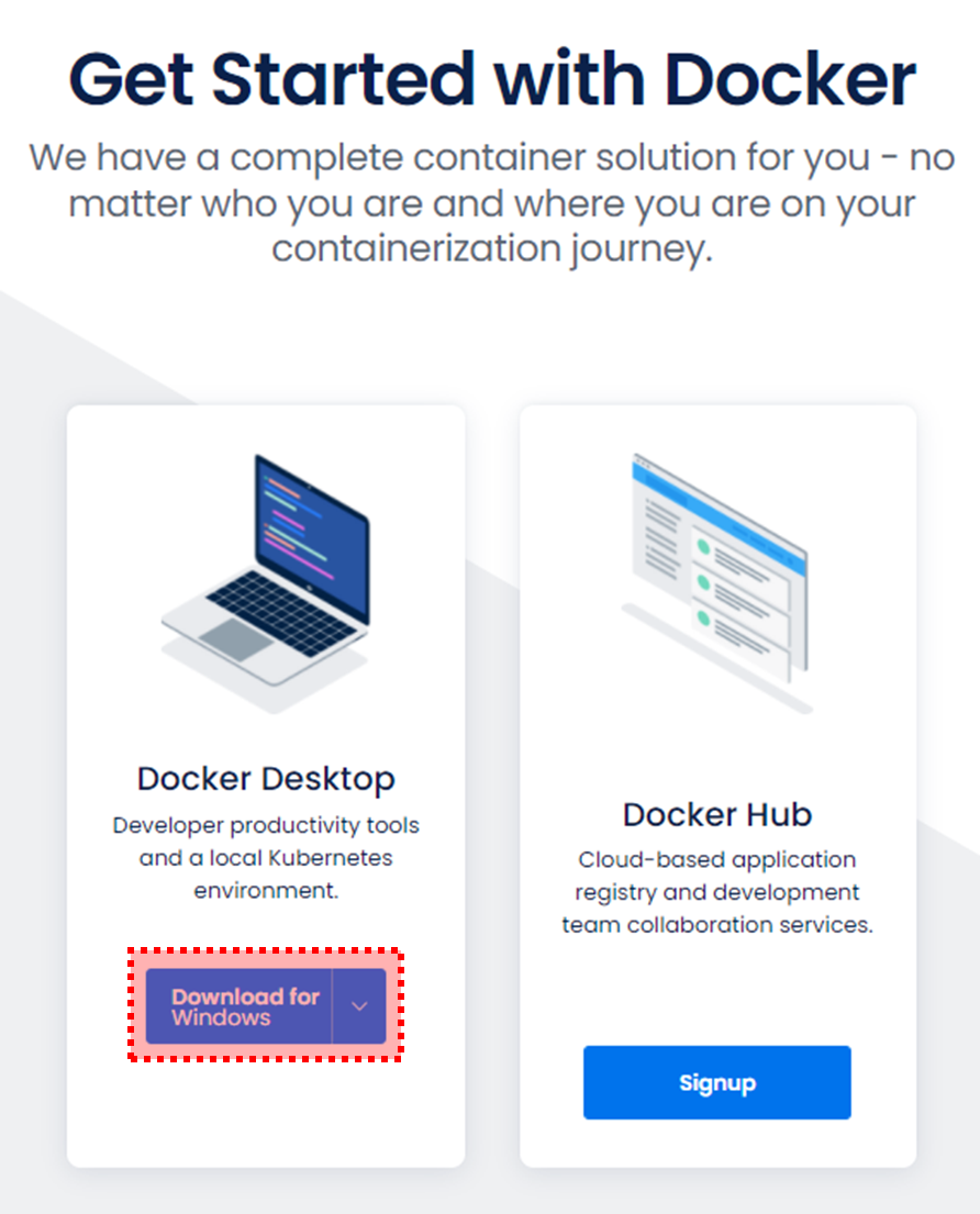 www.docker.com 에서 [Get Started] 버튼을 클릭하거나